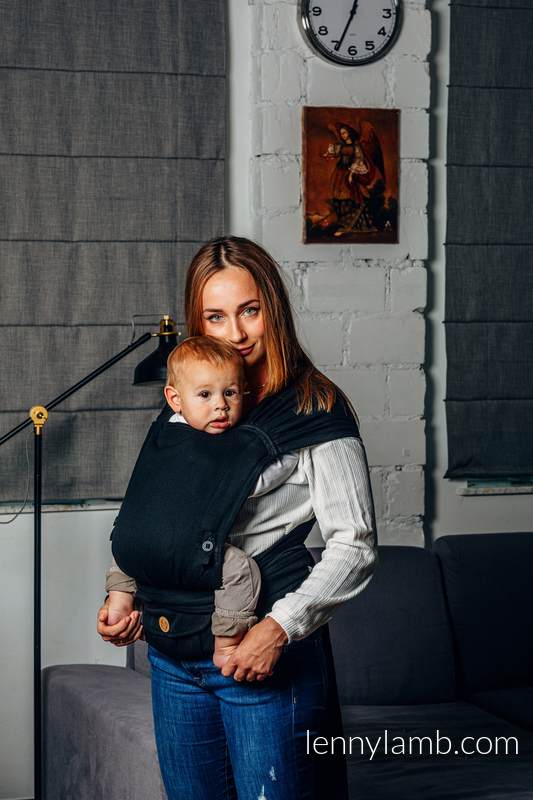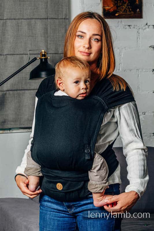 The LennyHybrid Half Buckle Carrier Black Ebony is a unique carrier that combines the advantages of an adjustable carrier and a wrap. carrier provides:
